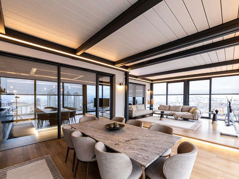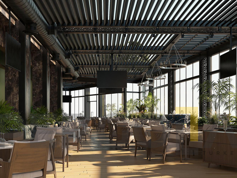 Modern tasarımlı dış mekân güneş, rüzgâr, yağmur, kar ve diğer elementlerden koruma sağlar. Dış mekân yaşamının olağanüstü kalitesini garanti eder. Bioclimatic Pergola Sistemi, modern tasarım ve yüksek düzeyde görsel ve termal konfor ile karakterizedir.